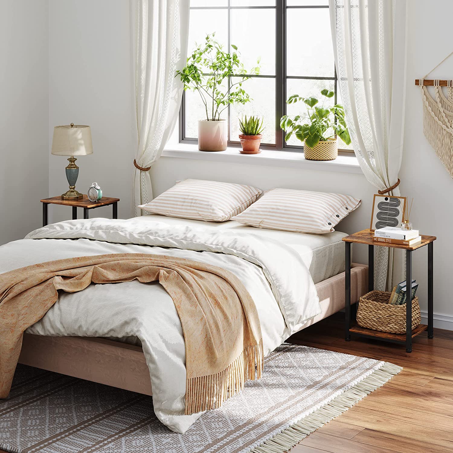 Simple Style: These set of 2 side tables have a warm retro hue and matte black metal frame, making them a perfect addition to any home decor. The clean and industrial design is always eye-catching.